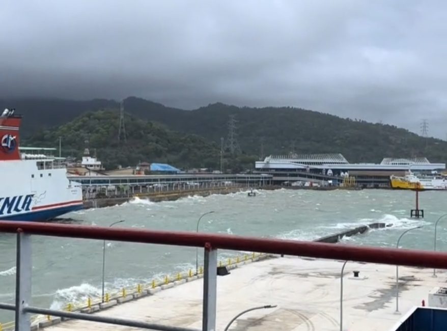 PORDES BANTEN – Cuaca buruk kembali terjadi di pelabuhan penyeberangan Merak Banten. Angin kencang dan ombak setinggi 5 meter terjadi di pelabuhan tersebut, Selasa, 10 Desember 2024.