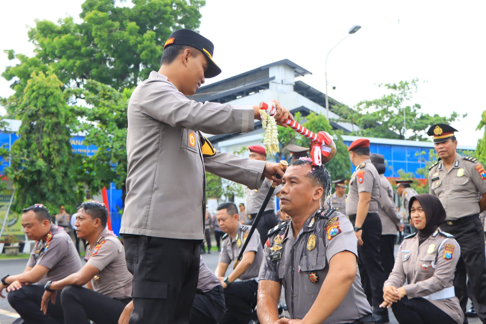Kemudian dilanjutkan ucapan selamat oleh Kapolres Tuban bersama para pejabatnya kepada anggota yang naik pangkat serta tradisi sujud syukur dan siraman kepada personel yang mendapat kenaikan pangkat.