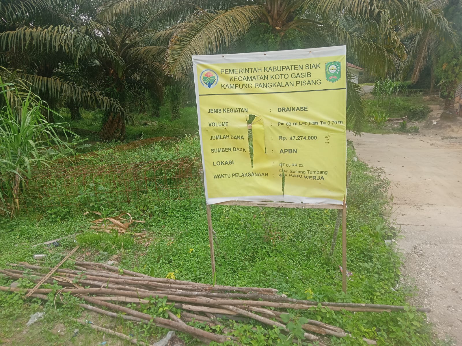 Dalam laporan itu disebutkan adanya kegiatan pembangunaan Prasarana Jalan Desa (Gorong-gorong, Selokan, Box/Slab Culvert, Drainase, Prasarana Jalan lain) seperti Pembangunan Drainase RT. 05 RK. 01 Dusun Sialang Tumbang dengan anggaran Rp 47.274.000 bersumber dari Dana Desa tahap 1 tahun 2023.