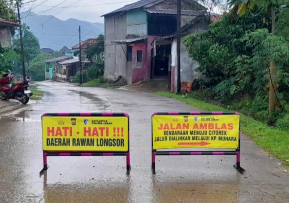 Diguyur Hujan Deras, Jalan Cipanas-Ciparay Kabupaten Lebak Longsor