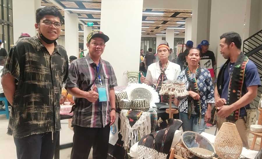 Pantauan Portal Desa, di lokasi pameran festival, Veronika Irun (62), di dampingi Frans Wanggur menawarkan bahan kerajinan tangan lokal karya masyarakat Desa Golo Wedong kepada setiap pengunjung yang menghampiri lapak mereka.