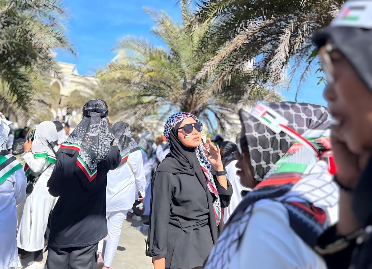 “Untuk itu kita sebagai warga Indonesia dan memiliki jiwa kemanusiaan yang tinggi patut kita turun ke jalan untuk bela Palestina. Sebagai bentuk sosial, rasa kepedulian sesama manusia, marilah kita memberikan sentuhan berupa donasi kepada saudara saudara kita di Palestina yang kondisi saat ini mengalami banyak kekurangan,” tukas gadis yang mirip dengan artis Bollywood Prety Zinta itu.