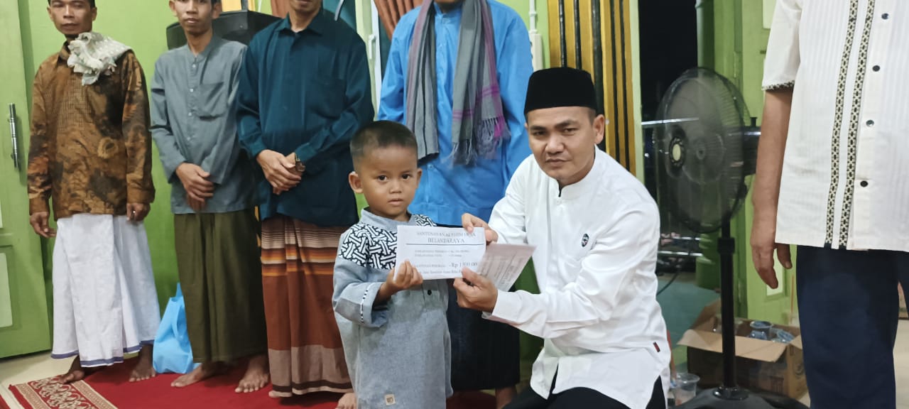 Penyaluran bantuan santunan berlangsung di Surau Al-Mukarabin Desa Belantaraya, Kecamatan Gaung, Provinsi Riau, dihadiri Pimpinan Pondok Pesantren Insanuramin, Bhabinkamtibmas, Tokoh Masyarakat, serta 55 anak Yatim Piatu.