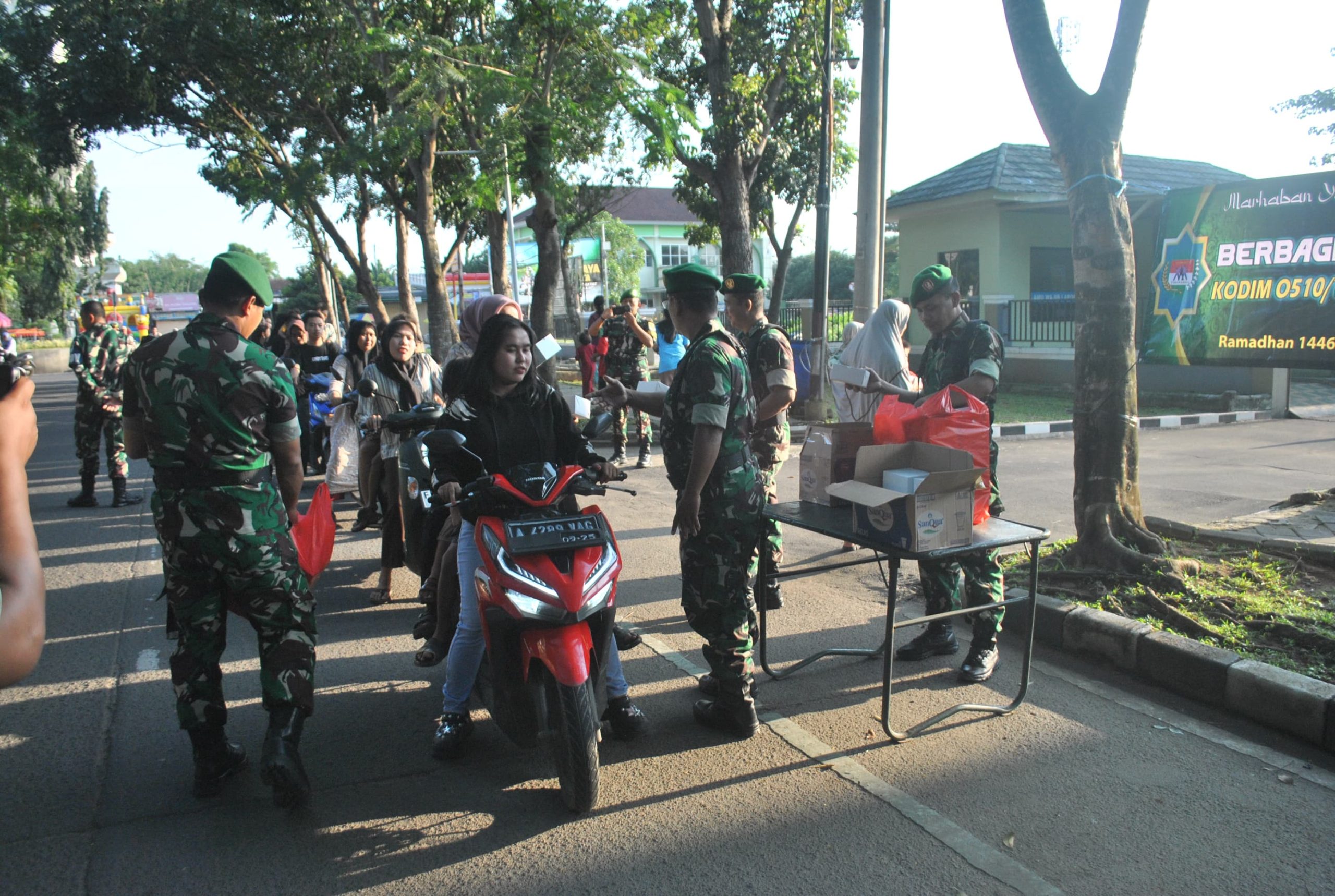 Sementata salah satu Personil Kodim 0510/Tigaraksa mengatakan pembagian takjil ini merupakan bagian dari upaya TNI untuk berbagi kebahagiaan di bulan Ramadan.
