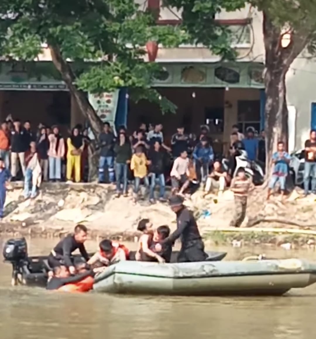 Basarnas menurunkan tim penyelam untuk evakuasi jenazah korban dari dalam air pada pagi hari ini setelah melakukan pencarian dari pukul 05:00 wib sampai ditemukannya jenazah korban M Tsaqif Novriza.