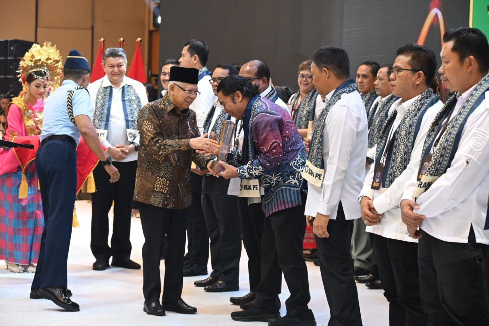 Wapres KH Ma’ruf Amin dalam arahannya mengucapkan selamat kepada seluruh penerima Penghargaan RAN PE 2024. Penghargaan yang diberikan ini, menurut Wapres, merupakan komitmen, kontribusi dan secara konsisten melakukan upaya-upaya pencegahan dan penanggulangan ekstremisme kekerasan di Indonesia.