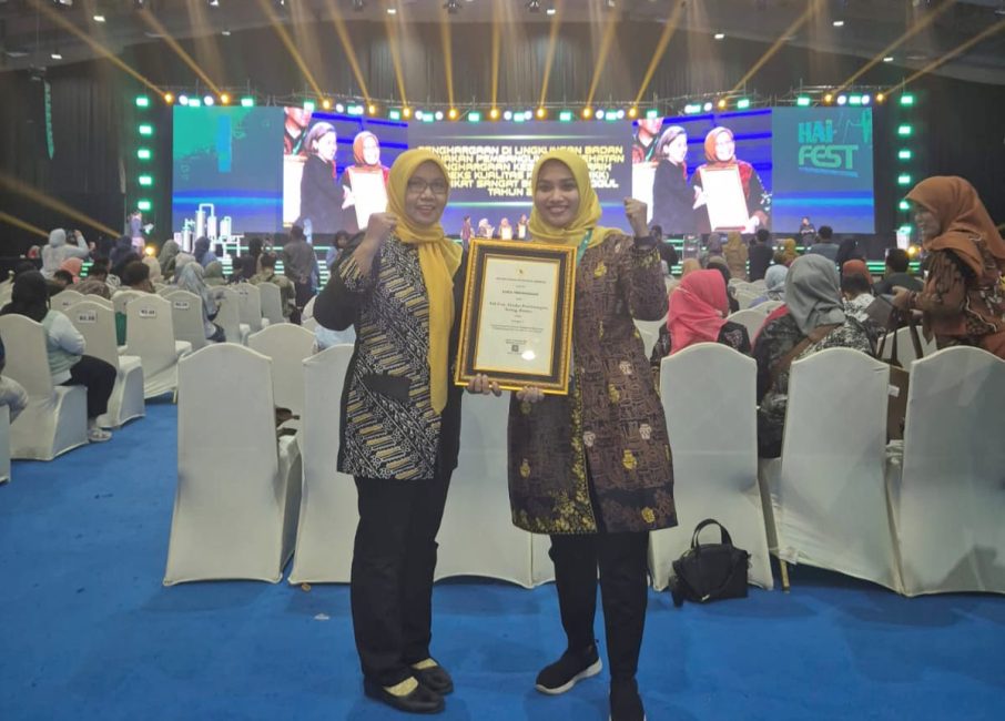 Secara simbolis penghargaan diberikan oleh Direktur Jenderal (Dirjen) Tenaga Kesehatan (Nakes) Kementerian Kesehatan RI Drg Arianti Anaya, MKM didamping Direktur Pembinaan dan Pengawasan Tenaga Kesehatan Zuubaidah Elvia kepada Pelaksana Tugas (Plt) Direktur RSDP Serang, Mujiyati Erianis pada Festival Inovasi Kesehatan (Health Innovation Festival) dalam rangka memperingati Hari Kesehatan Nasional (HKN) ke-60, di Jakarta Convention Center (JCC) Jakarta Pusat pada Sabtu, 9 November 2024.