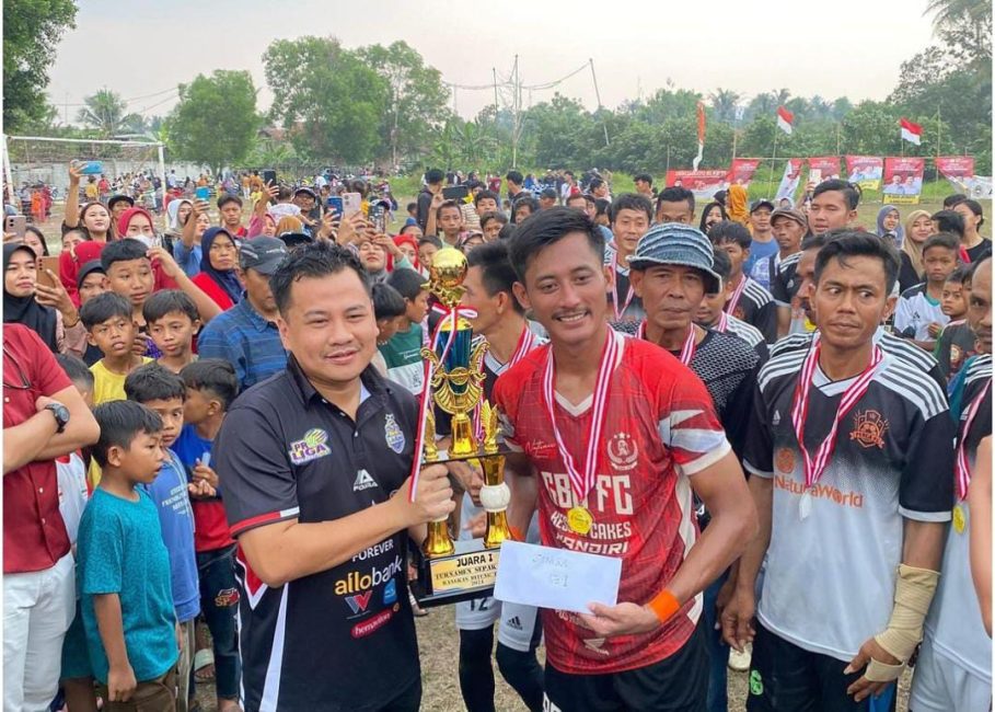 PORDES TANGERANG – Anggota Dewan Perwakilan Rakyat Daerah (DPRD) Kabupaten Lebak Fraksi Partai Demokrat Rifo Harianto Putra, menutup turnamen sepak bola antar RW di Desa Rangkas bitung Timur, Kecamatan Rangkas Bitung, Kabupaten Lebak.